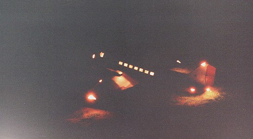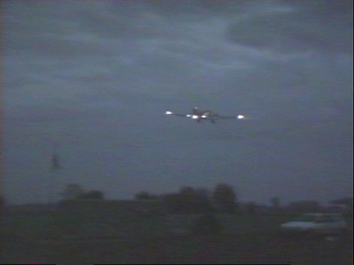 10.1992 . . ![]() ....Too little light for photographs - the evening of the night flight. So I choosed a light-arrangement, you'll see on the pictures. On the flight day it was not totally dark - safety first - but you can't imagine how difficult it is, to fly such a modelplane in arising darkness! When you look into the rest of light up on the sky and after that, coming down to landing approach and you have to look over a grey, foggy landscape, onto a black horizon and onto a deep black runway-end - it is a realy dark thing! Better there are runway lights then, in order to measure the time / difference leaving for touch-down.